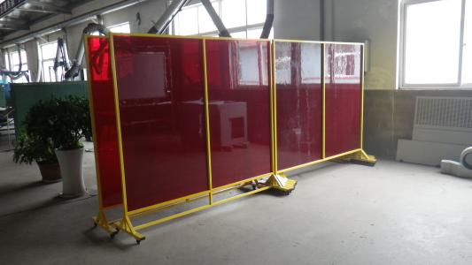 上海京鵬焊接車間隔斷是一種反復移動的阻擋焊渣灰塵的電焊工作身邊隔斷用品,是電焊工焊接操作的配套防護用品。顏色多樣,品種齊全。有移動的、固定的等不同款式,按照客戶的要求量身定做。